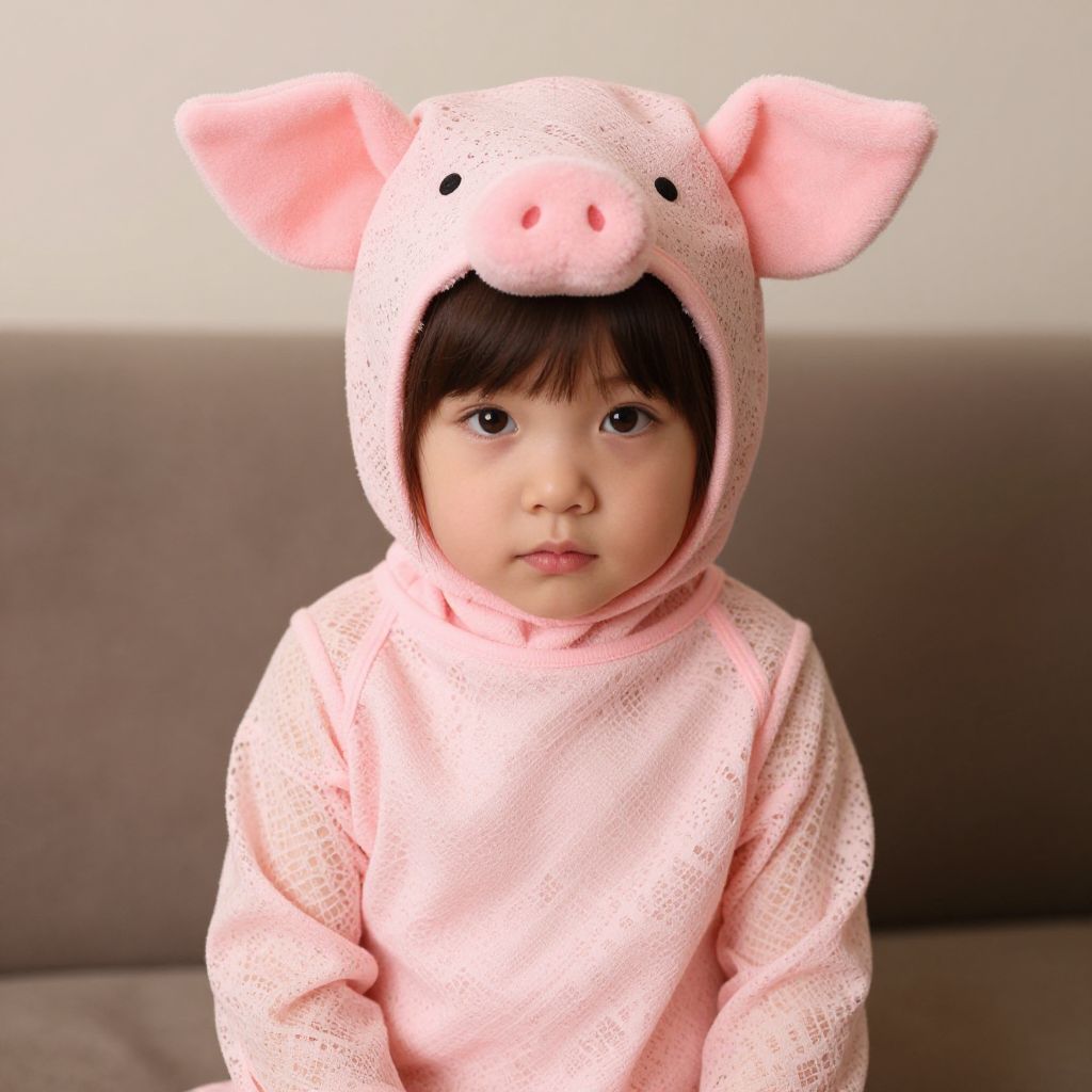 "lace pig infant costume, solo, kigurumi, looking at viewer, what, realistic, animal costume, photorealistic, 1boy, 1girl Realistic photo of casual sexy person with pretty face"