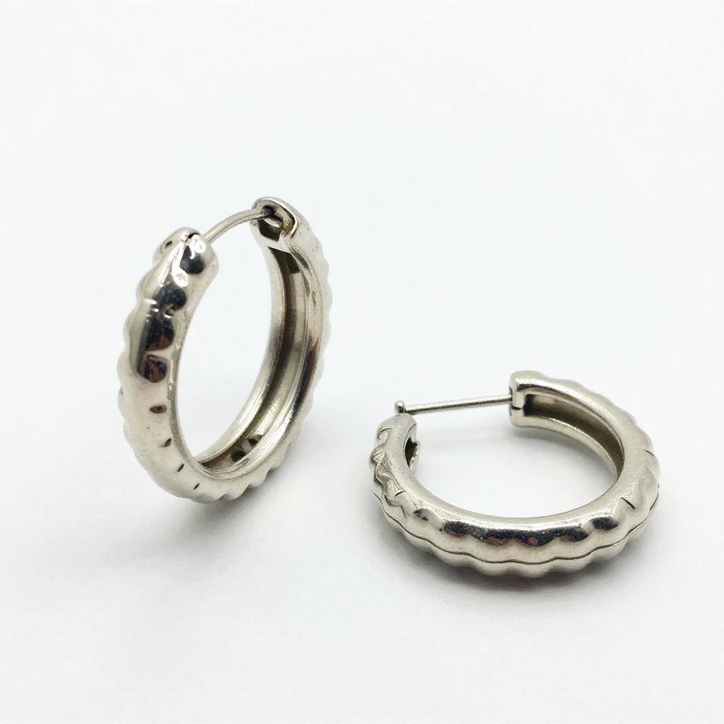 Silver Hinged Hoop Earrings with Scalloped Edge