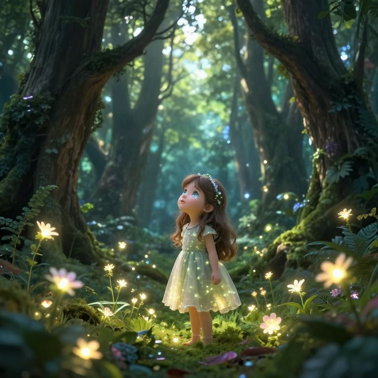 In a golden-hued dreamscape, a child tenderly holds a delicate flower while standing beside a quaint clock tower, where time seems to merge with nature, its hands whispering secrets to the blossoms that bloom and fade in the soft glow of the setting sun.