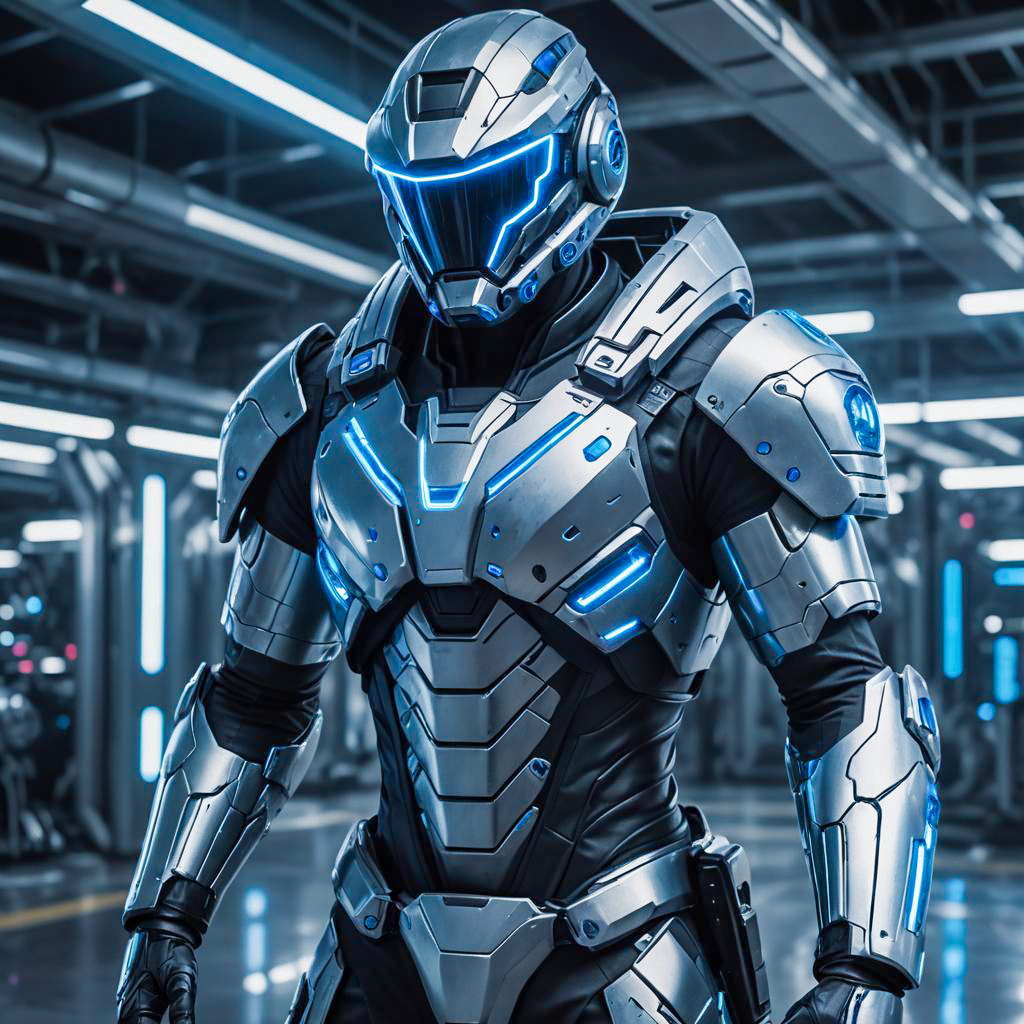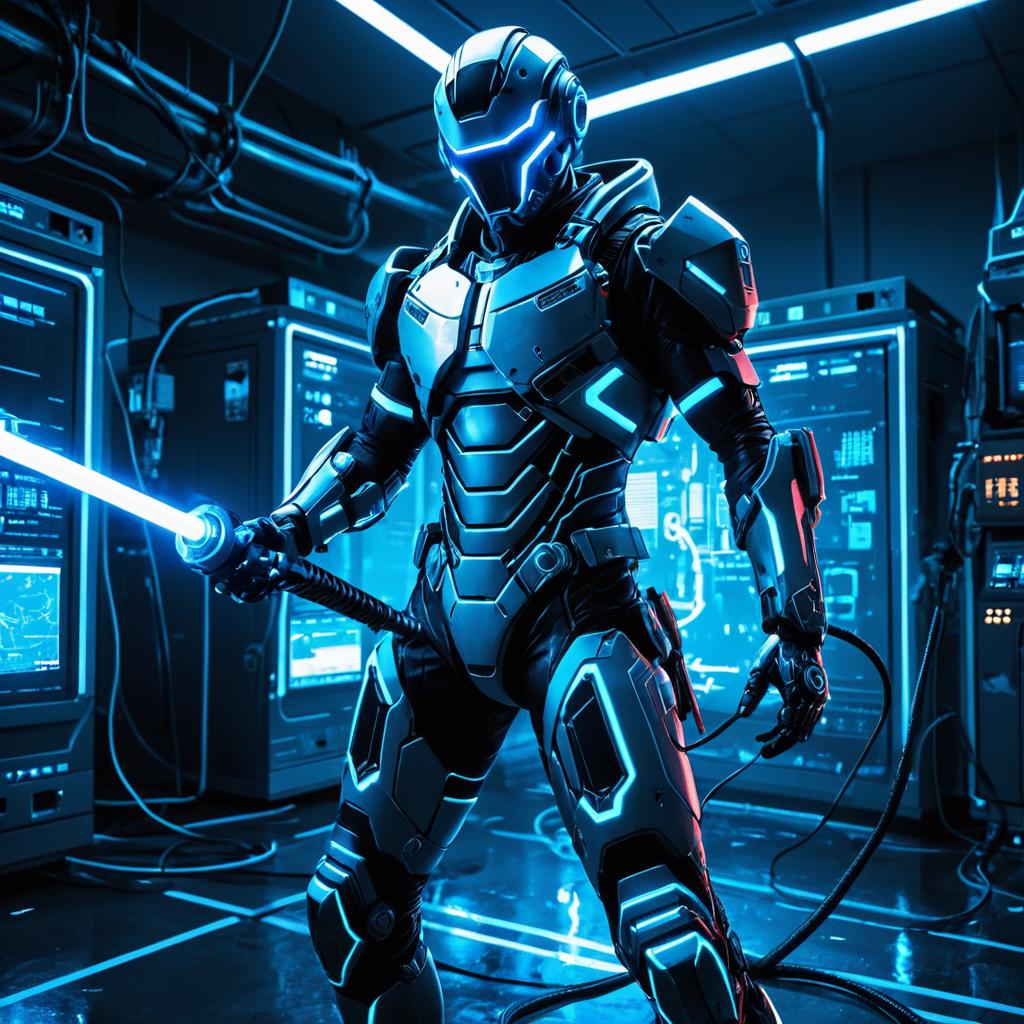 Neon-lit Bio-Engineered Mercenary in Cybernetic Lab