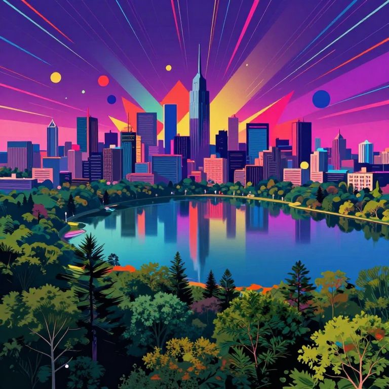 Visualize an urban dreamscape where a cityscape, adorned with towering skyscrapers, morphs into an abstract terrain under the influence of a surreal substance. From a low viewpoint, gaze upwards at the sky and buildings that seem to flow like liquid wax, capturing the unsettling sensation of a vivid dream. Dominated by intense colors, hues shift erratically across the cityscape, forming a captivating symphony of shapes and forms. This mesmerizing visual, blurring the lines between reality and imagination, evokes fascination and apprehension as it invites viewers to delve into the enigmatic realms of their subconscious minds.