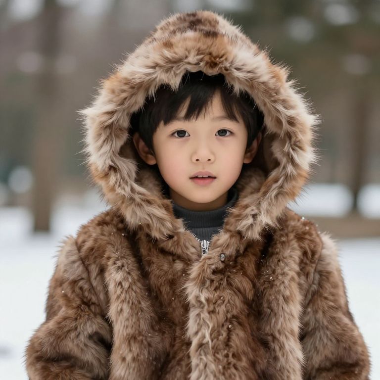 Young Boy in Brown Fur Coat