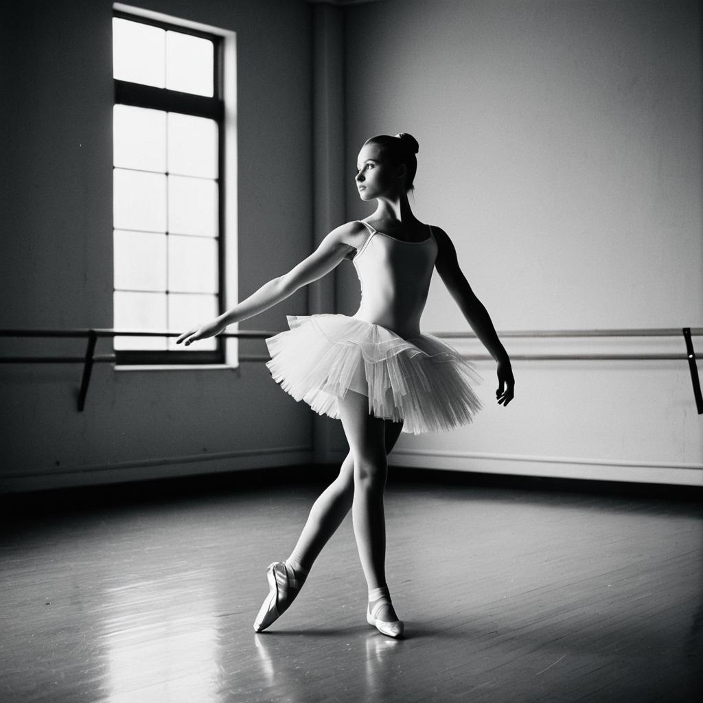 Young Ballerina Practicing Arabesque in Lavender Studio