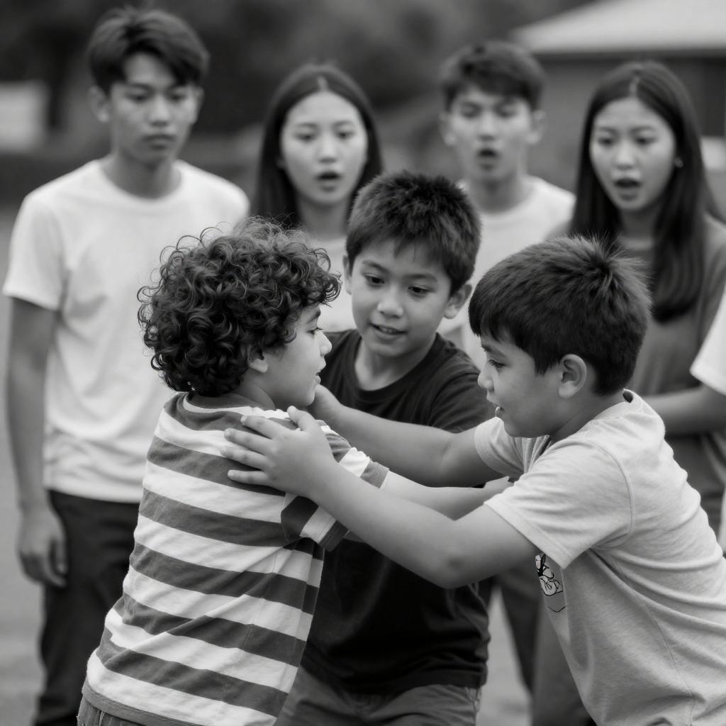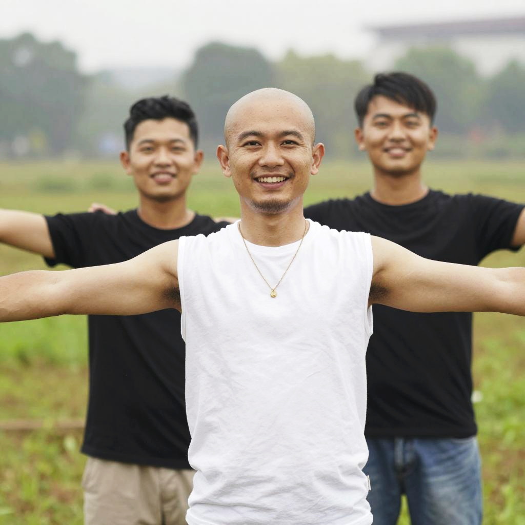 A group of diverse hands reaching up together in a high-five gesture, outdoors in soft natural sunlight, background of blurred greenery and a basketball hoop, warm natural light filtering through trees, realistic skin textures, candid and energetic mood