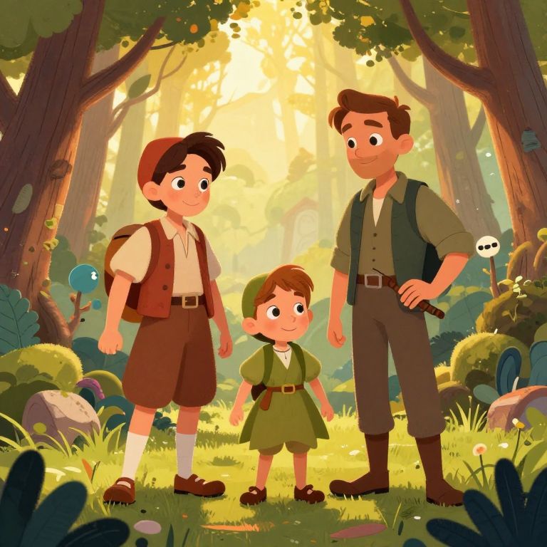 A vibrant cartoon-style illustration depicts Hansel and Gretel from \"Tales of the Efteling\" by Martine Bijl and Anton Pieck, featuring the characters in a whimsical forest setting with warm, golden-hour lighting and detailed digital artistry.