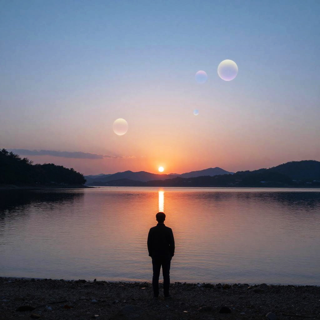 AI album art generator free showcasing dreamy ethereal landscapes mixed with AI-inspired geometric patterns and vivid gradients, blending nature and technology, ideal for electronic or indie music album covers, with a balance of softness and digital sharpness.
