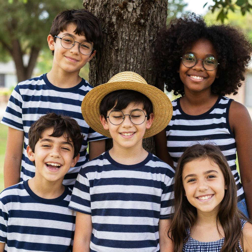 Multiple boys, shirt, pants, bag, jacket, outdoors, glasses, holding, smile, denim, jeans, book, holding book, black hair, dark skin, plaid shirt, black jacket, plaid, jewelry, 1girl, hood, long sleeves, day, black shirt, earrings