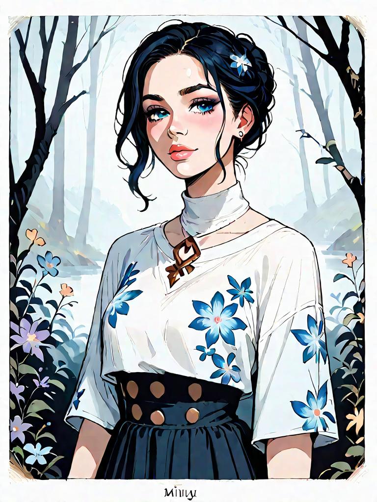 Medieval Girl in Bohemian Sundress in Dark Forest