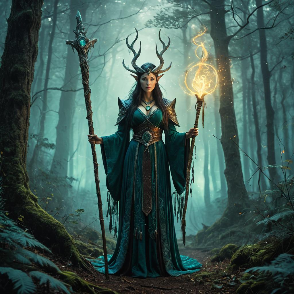 Forest Sorceress with Glowing Staff