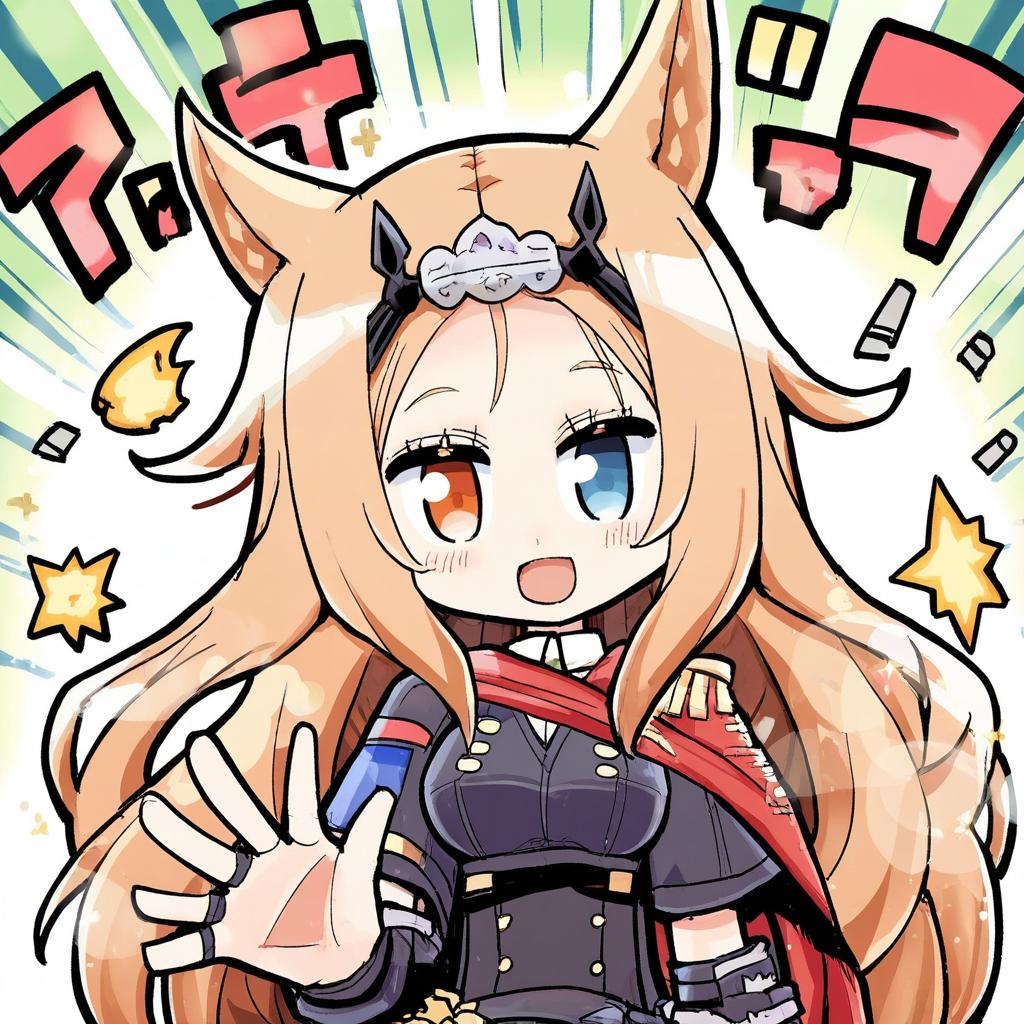 Archetto (arknights), arknights, 1girl, heterochromia, animal ears, blue eyes, red eyes, blonde hair, very long hair, long hair, brown hair, medium breasts, by artist witoi (roa), leet