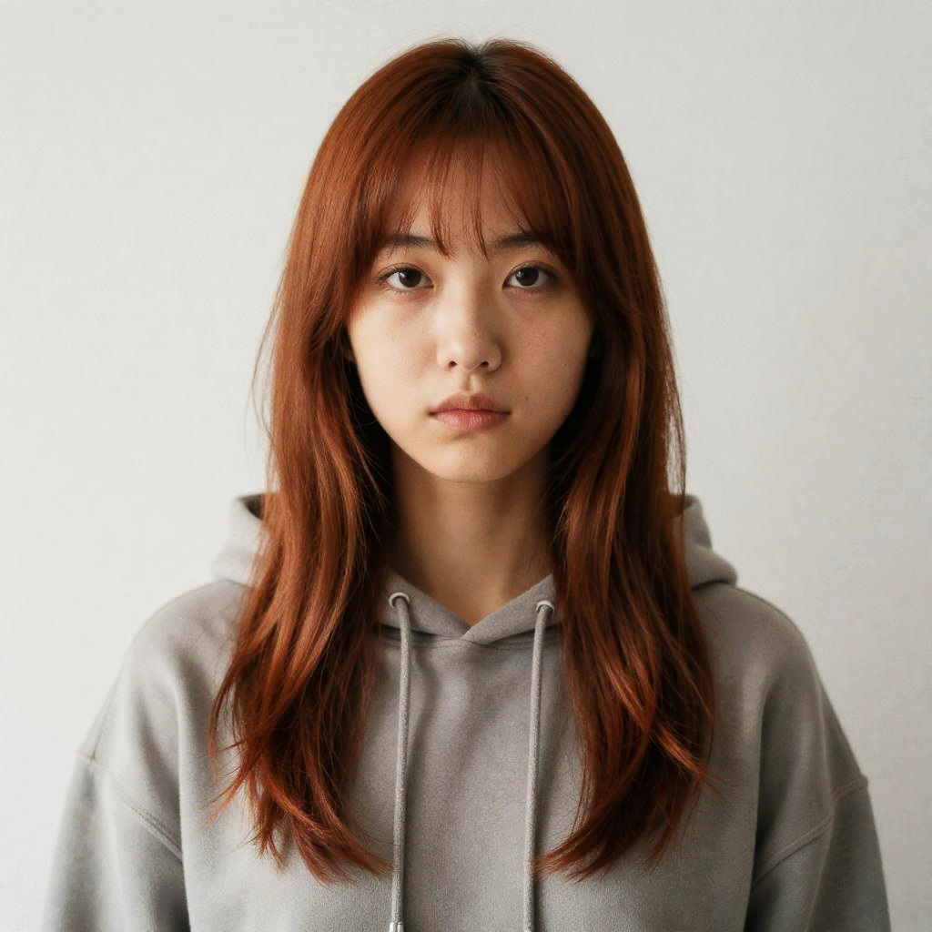 Realistic Auburn-Haired Girl in Hoodie