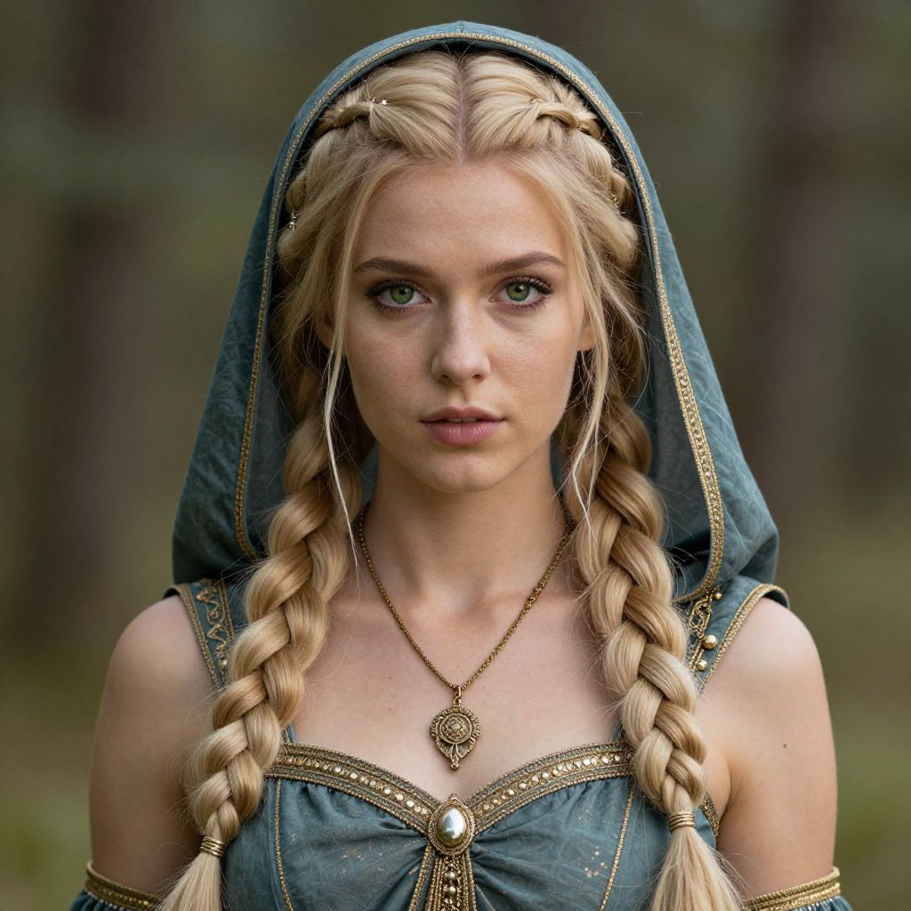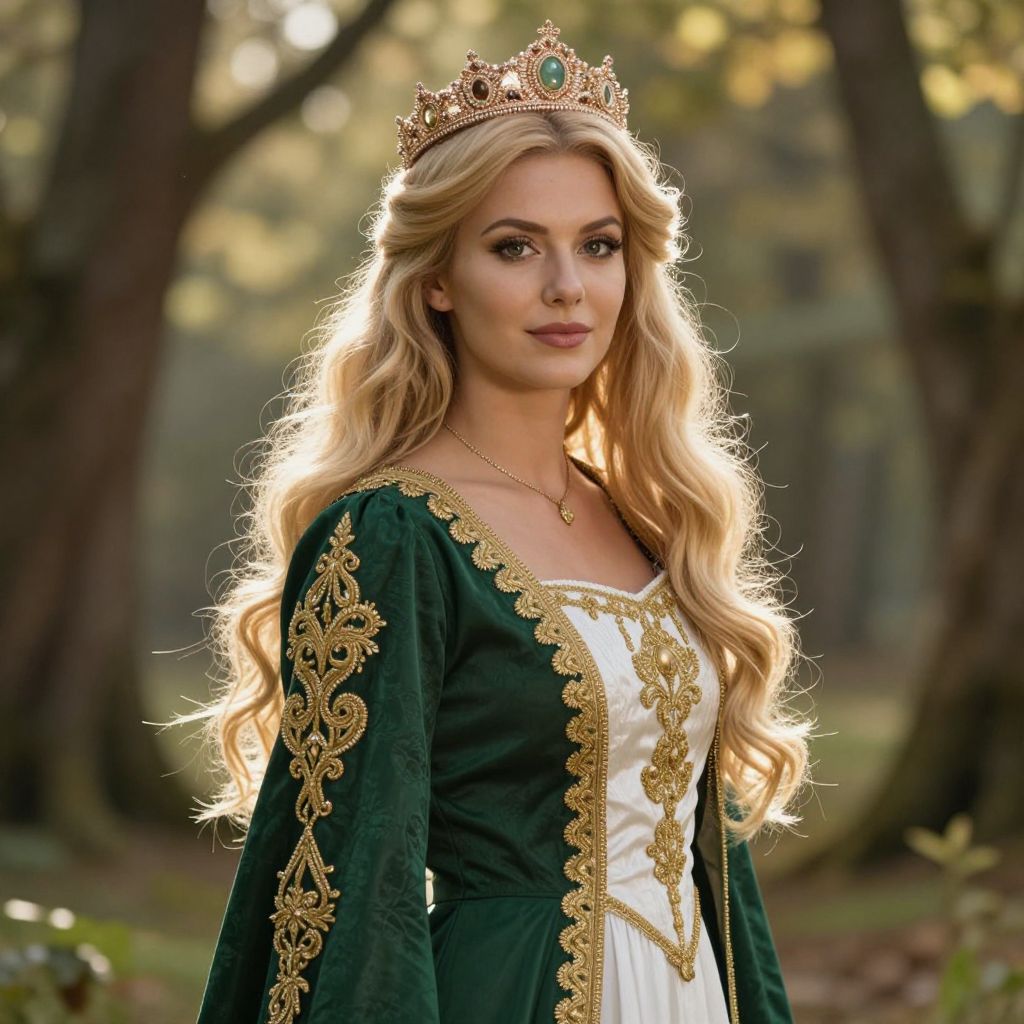 Blonde Woman in Embroidered Dress