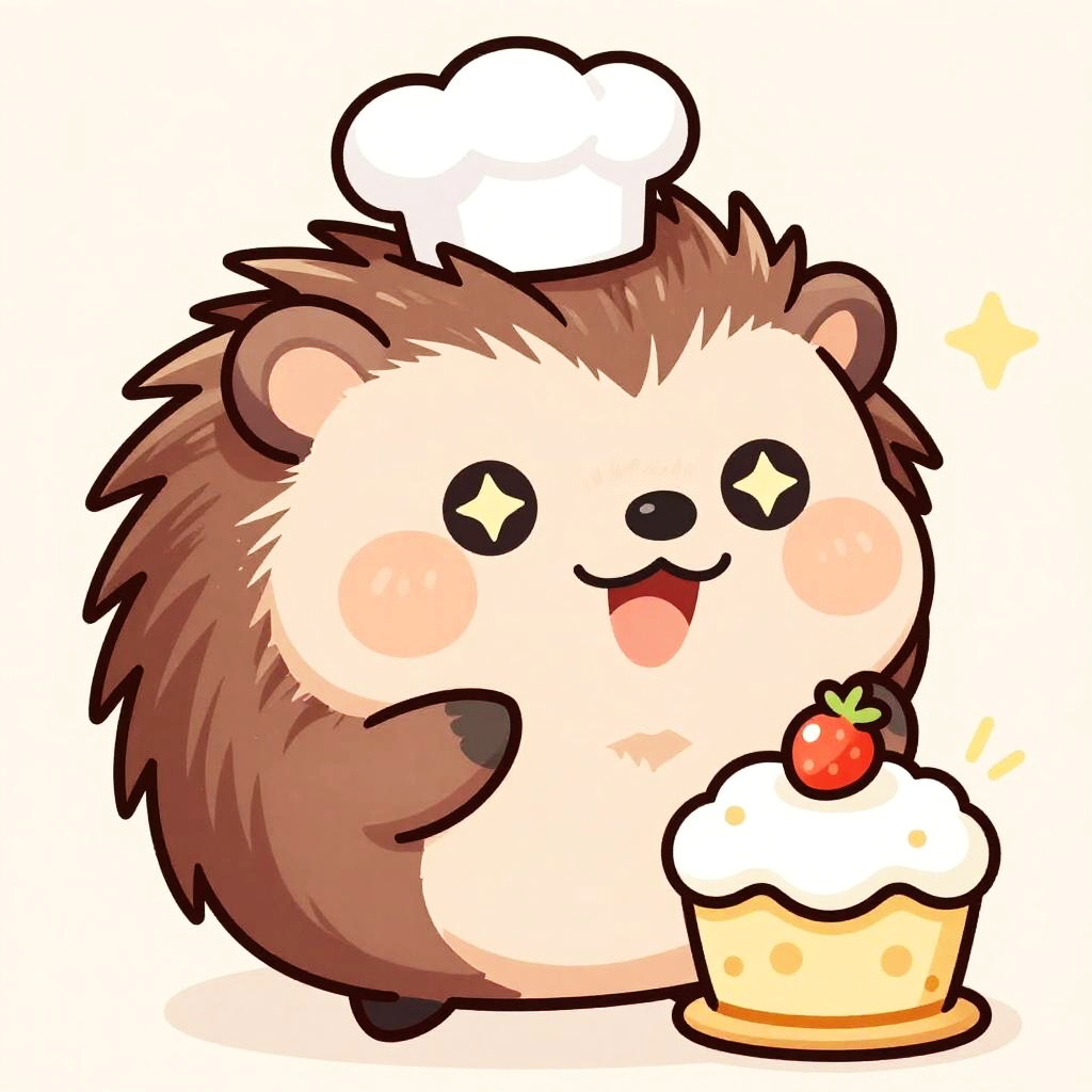 Chibi Flustered Hedgehog Baker With Starry Eyes