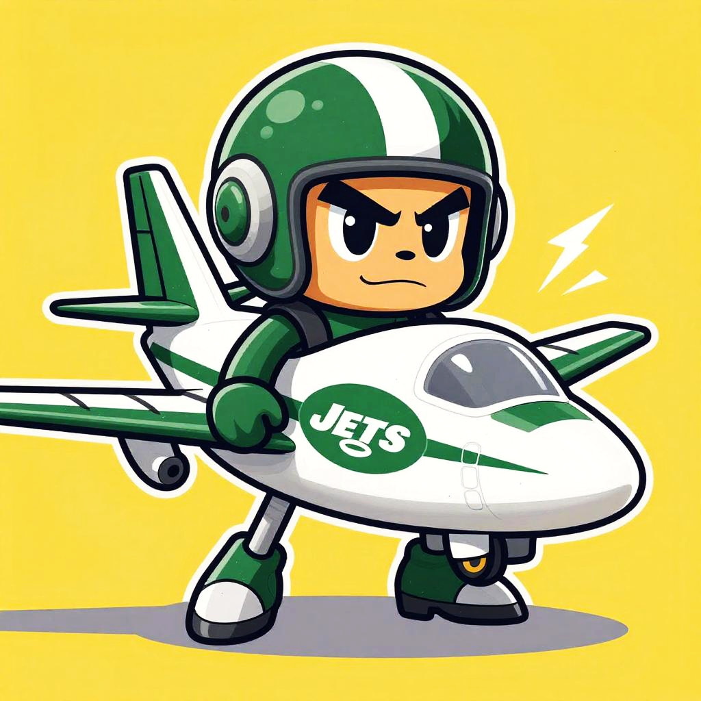 What is the jets mascot, a fierce green and white jet airplane character with a sporty helmet, dynamic and bold design, vibrant background, digital art