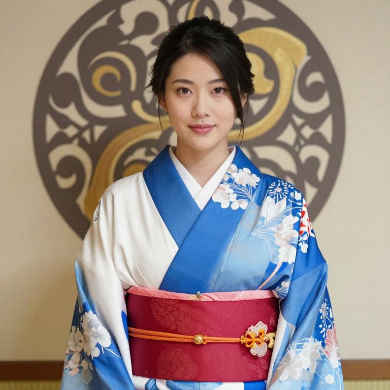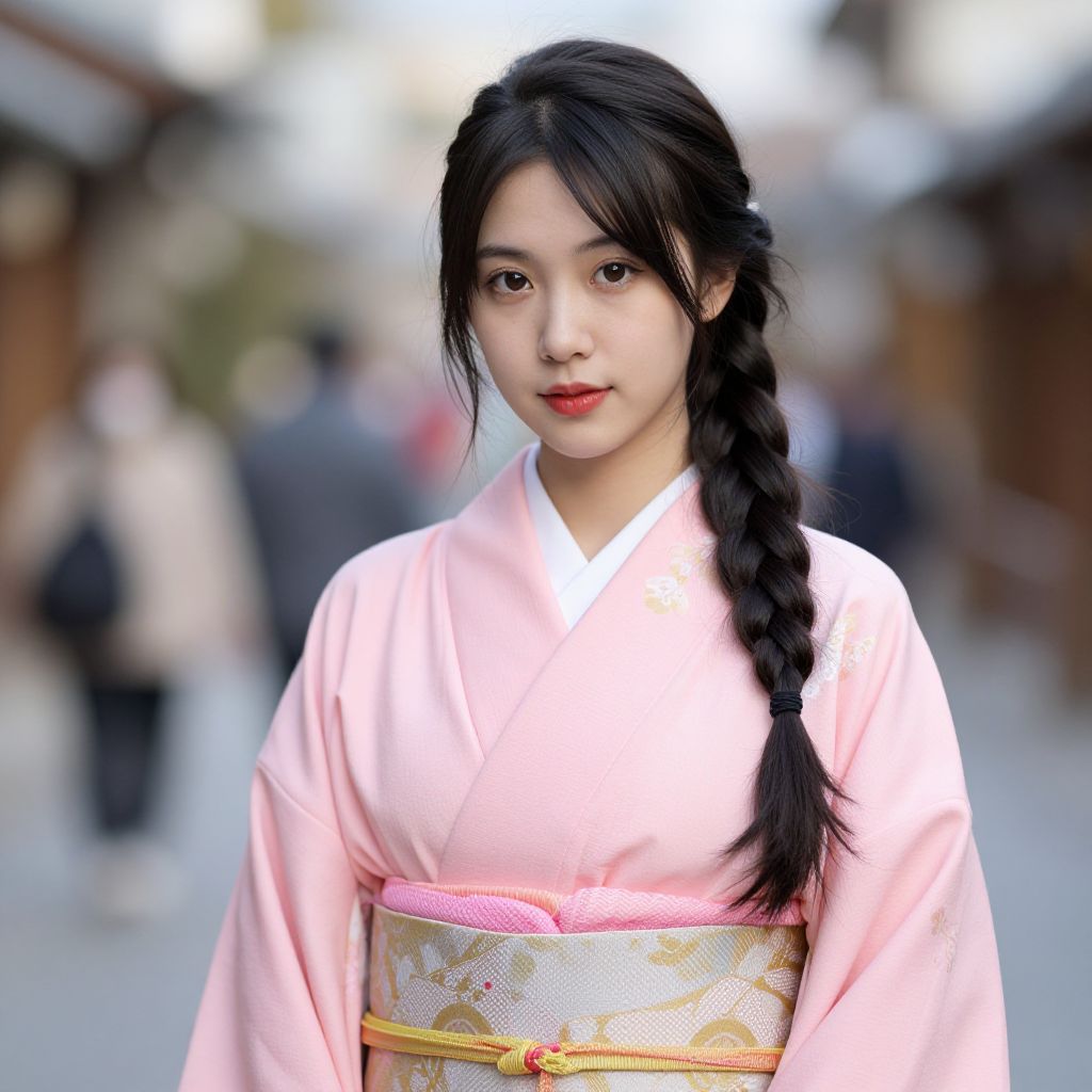 Asian Woman in Embroidered Kimono