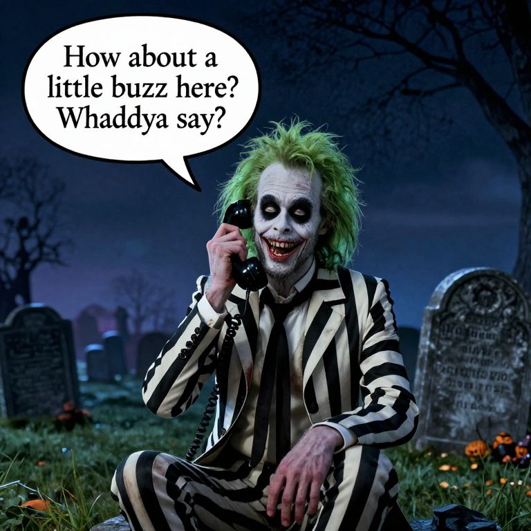 A rugged, dust-covered warrior grips the wheel of a beat-up, armored car, roaring across a wasteland landscape, The car is an intimidating machine—cobbled together with scraps of metal, reinforced windows, and rows of buzz coins welded along the hood as makeshift armor, Its tires kick up clouds of sand and debris as it speeds forward, dodging jagged rocks and twisted remnants of an old highway, Inside, the driver is decked out in worn leather armor, a spiked shoulder pad on one side, and a pair of cracked goggles that glow faintly with a lightning bolt emblem reflecting on each lens, His gloves are fingerless, revealing scarred, dirt-streaked hands gripping the wheel, and a tattered bandana covers the lower half of his face, Just visible on the dashboard is a handwritten note scrawled on a torn piece of metal: “Buzz or Bust, ” Above him, a speech bubble reads: “Out here, buzz is life!” Behind him, a desert filled with twisted metal structures and scorched earth stretches endlessly, while other ragged vehicles can be seen in pursuit, The whole scene feels tense and wild, capturing the desperation and intensity of a wasteland warrior’s hunt for that elusive “buzz