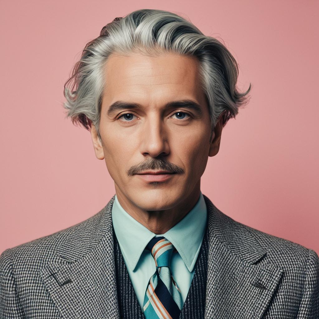 Extreme Close-Up Shot Of Style Inspired Clothing, Realistic editorial photo shot by Wes Anderson of an adventurous woman, 27, dark brown hair, dressed as a retro circus ringmaster, pastel background and clothing, quirky, funny, fun Nikon photography portrait frontal symmetric, HD, 8k, 200mm,