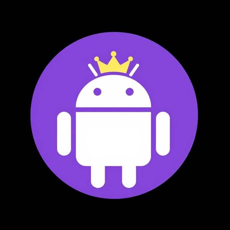 "Android purple circle of a disney monster face wearing a crown, simple, icon, black background - Upscaled by,"
