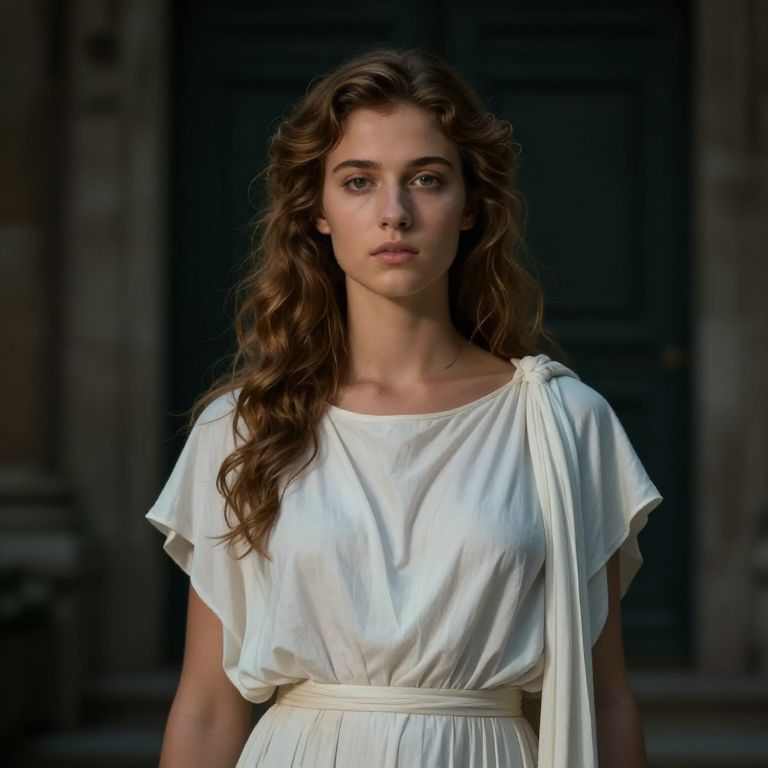 School Life Greek female goddess of Change, Freedom and Luck, Hermes, cinematic lighting, looking straight at camera - Remix by,
