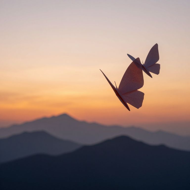Mountains fold like origami into sleek paper butterflies at sunset, gliding skyward only to reassemble again at dawn.