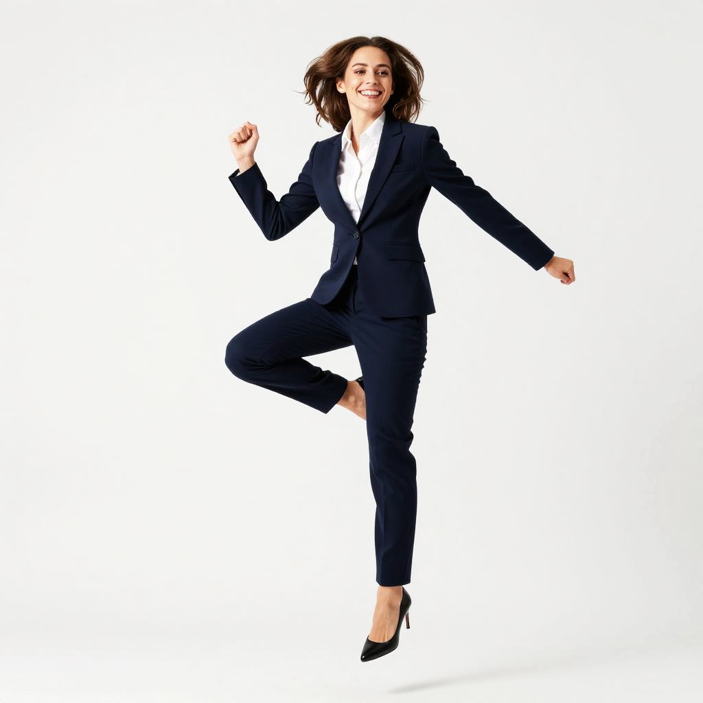 Joyful Woman Mid-Air in Vibrant Pants