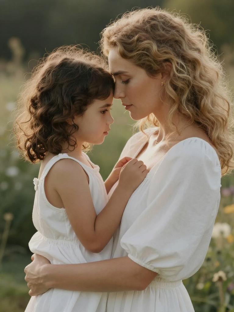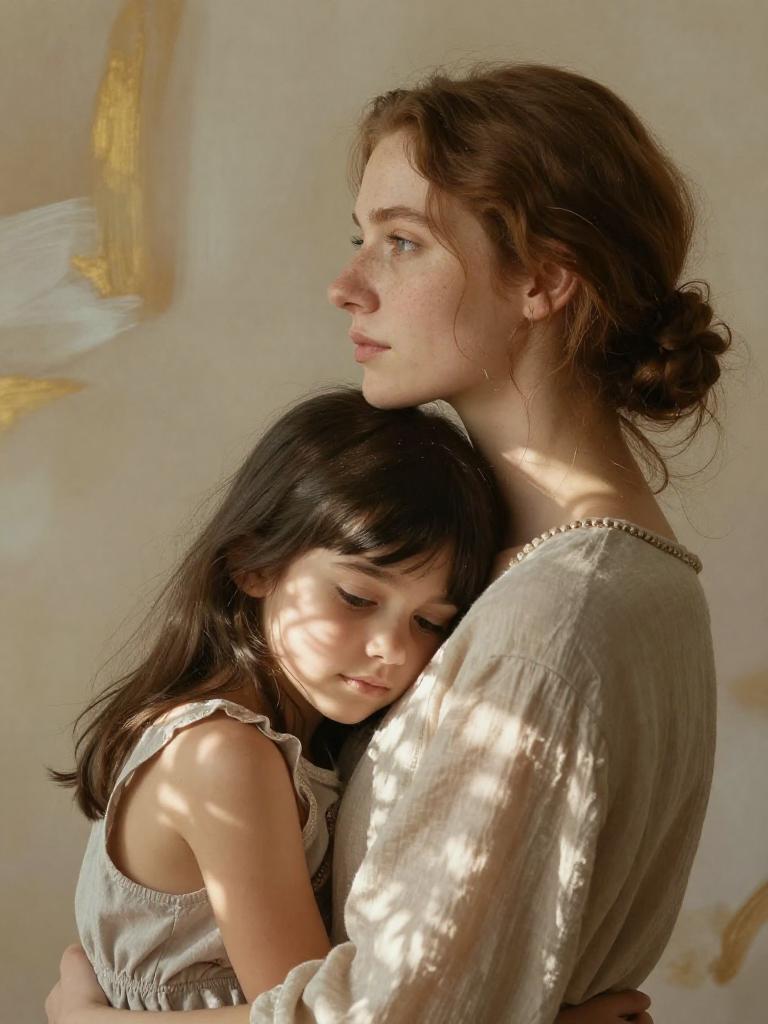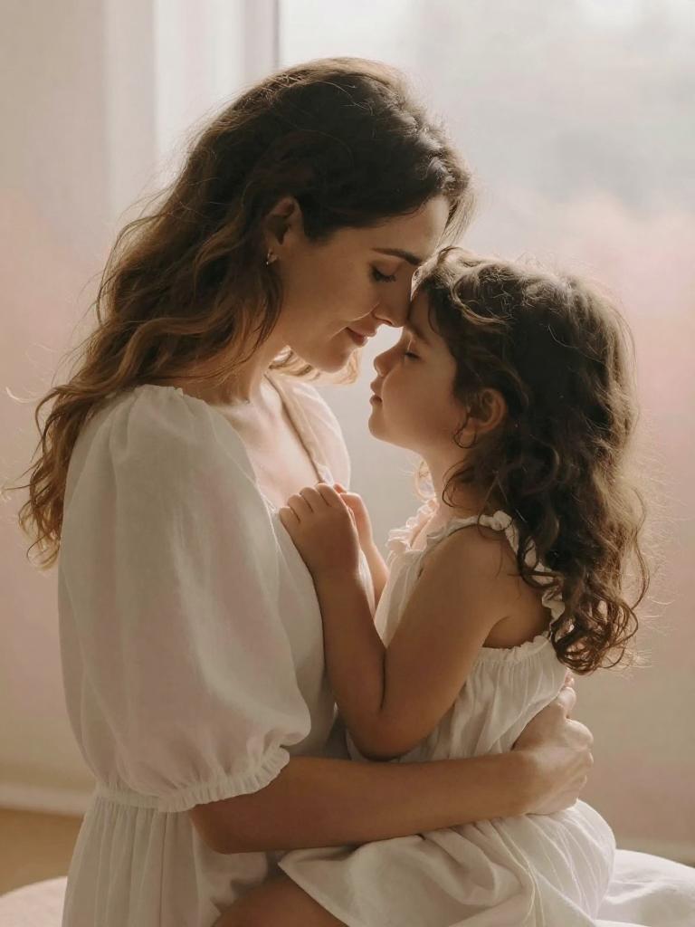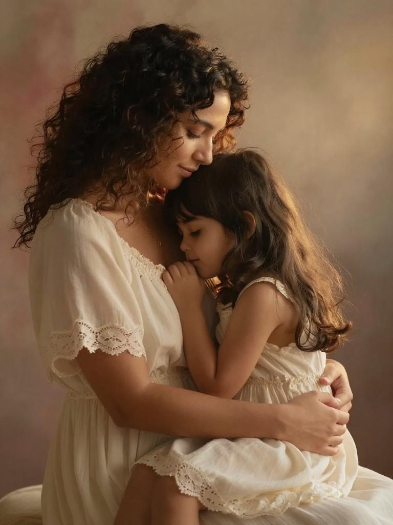 Tender Mother and Daughter Embrace Portrait