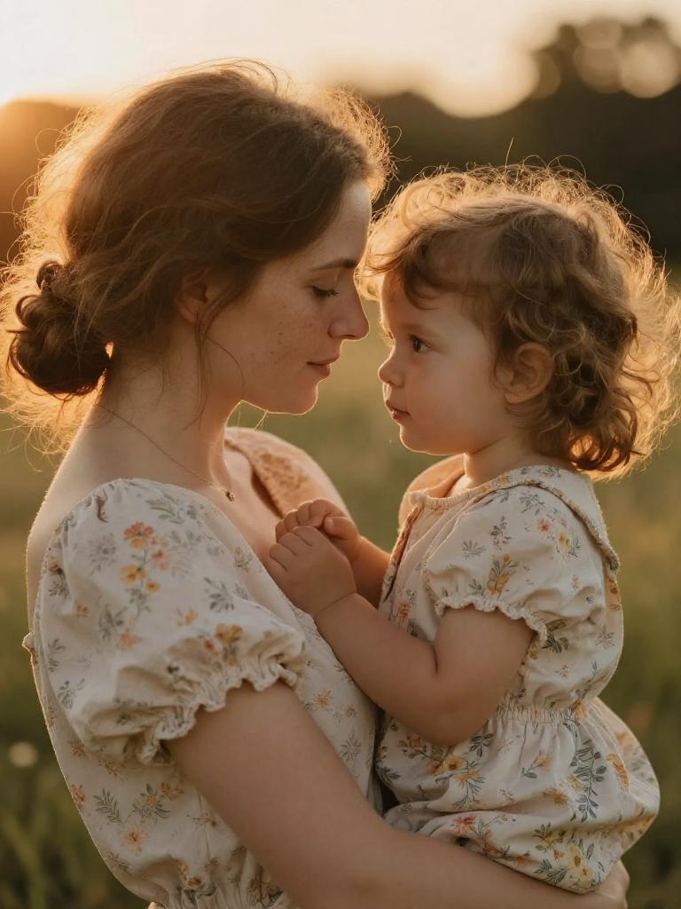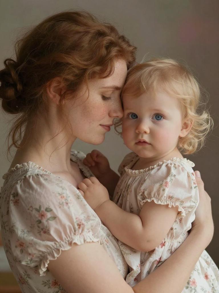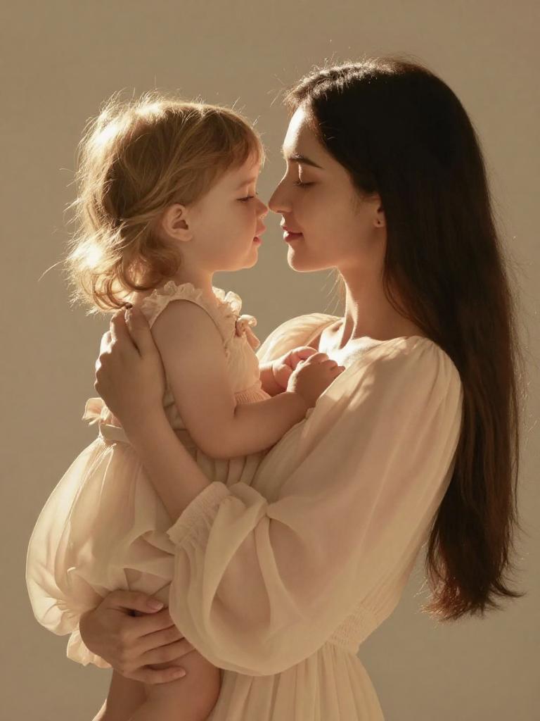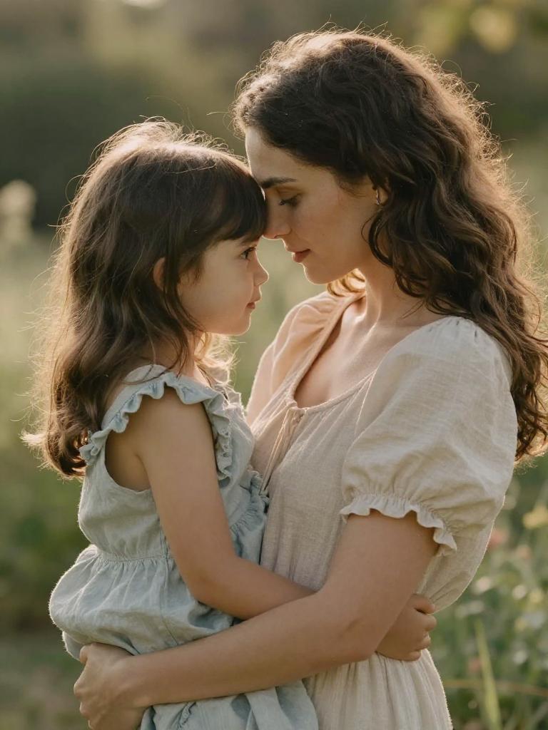 Tender Mother and Daughter Embrace Portrait