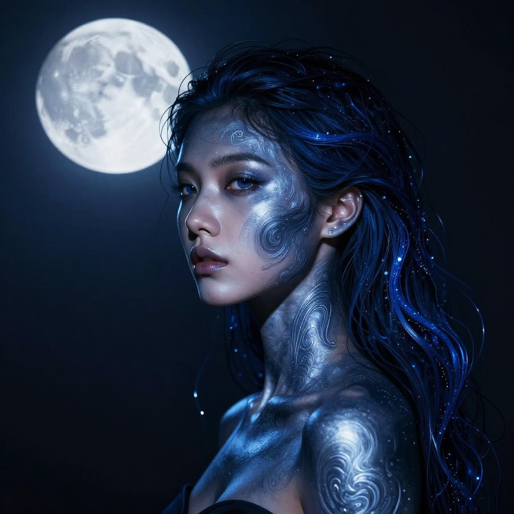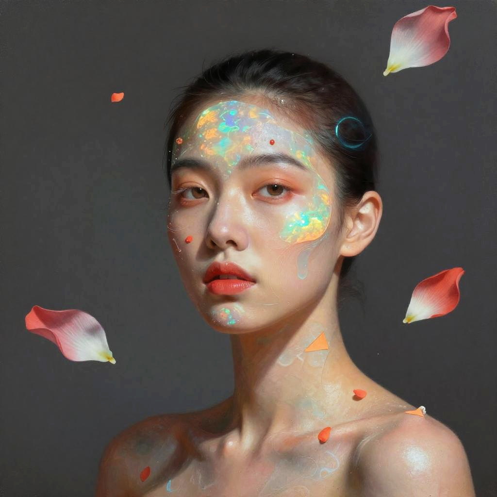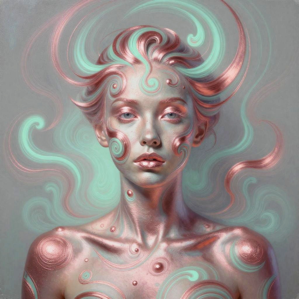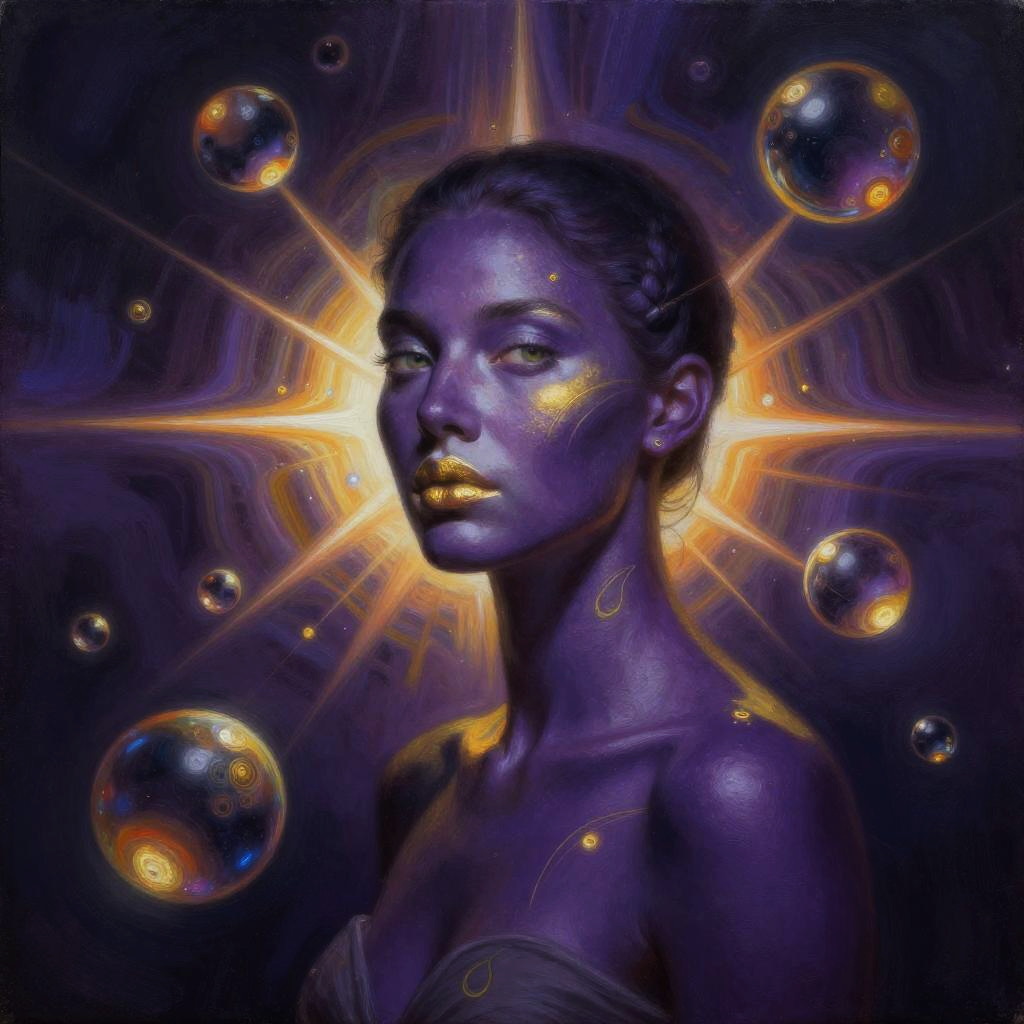 Surreal Woman with Green and Purple Skin