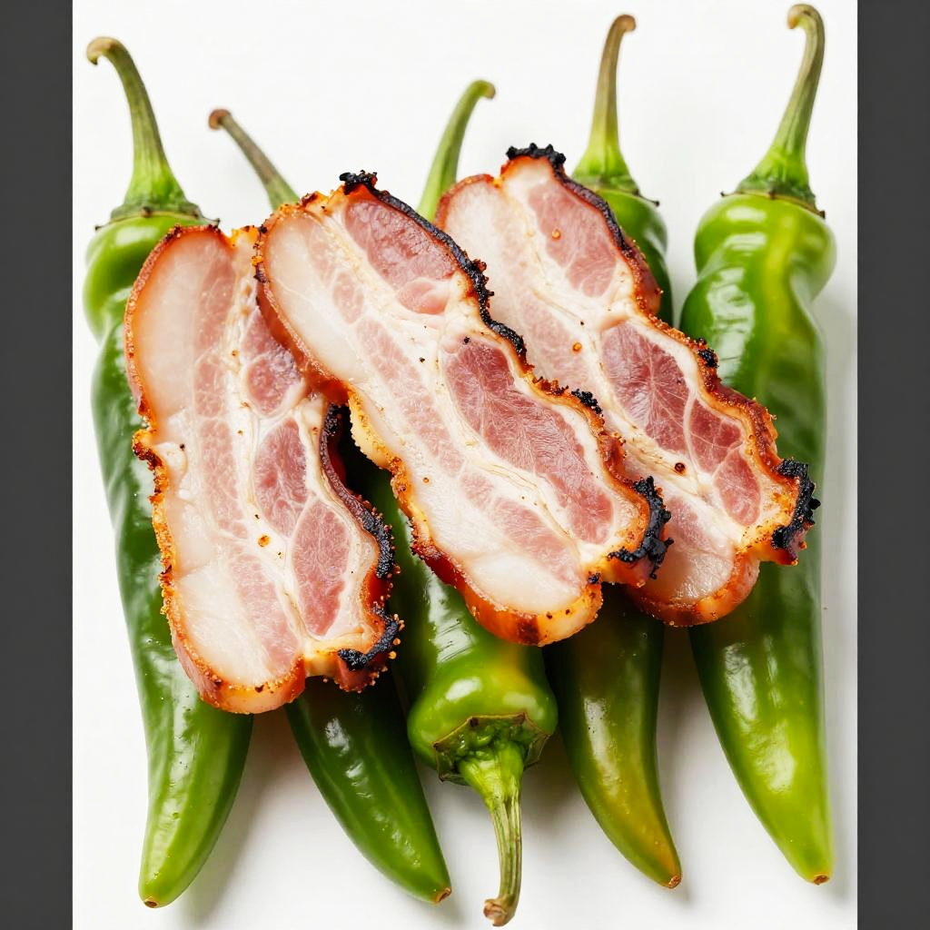 Close-Up of Bacon and Green Chilies