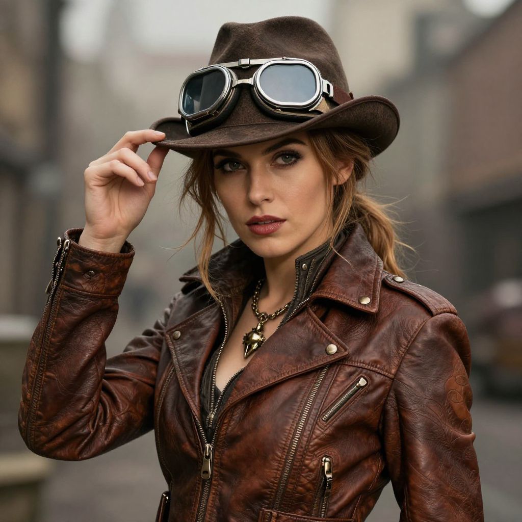 Steampunk Woman in Leather Jacket