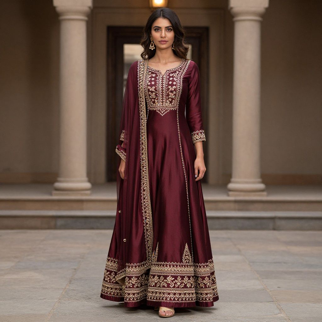"Silk Indo Western Dress, a woman in a long dress poses for a picture"