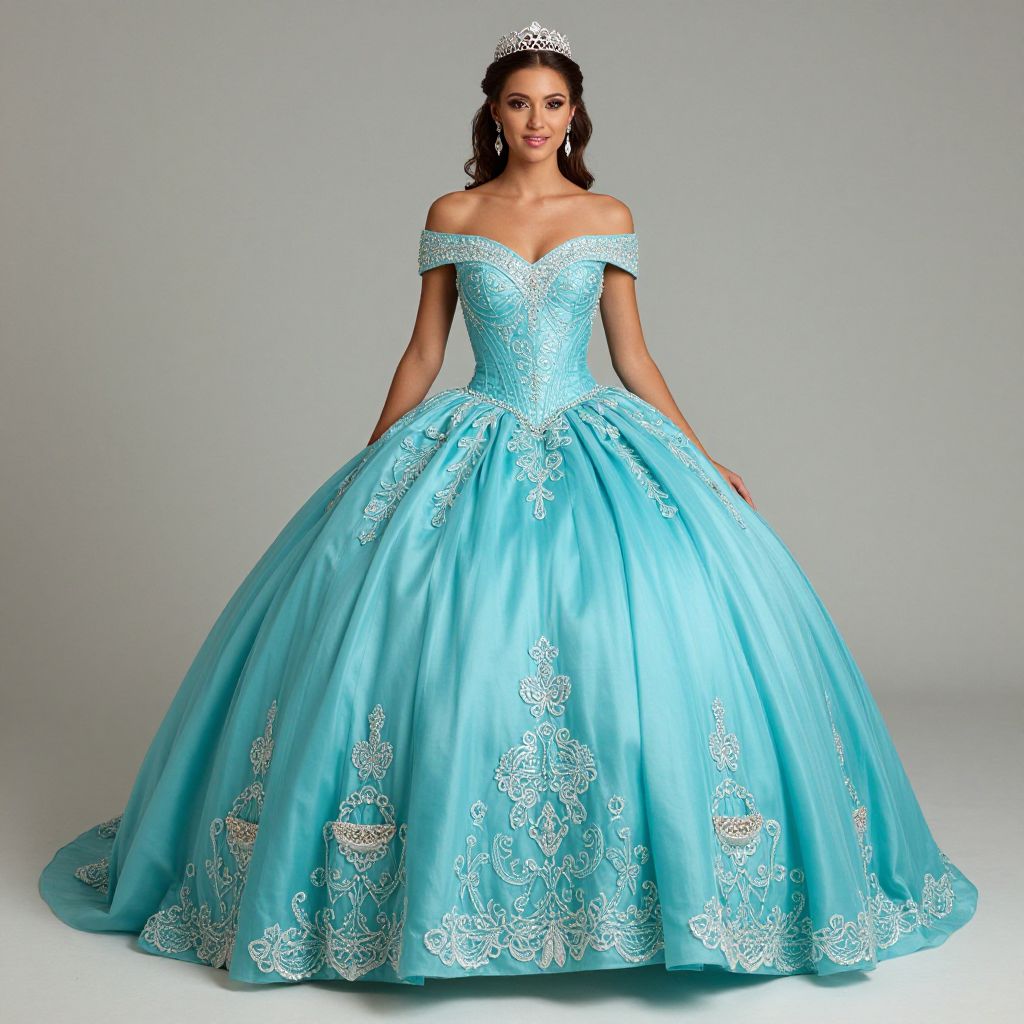 Elegant Turquoise Quinceañera Gown