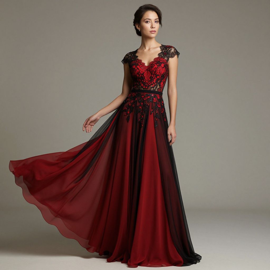Elegant Red and Black Lace Gown