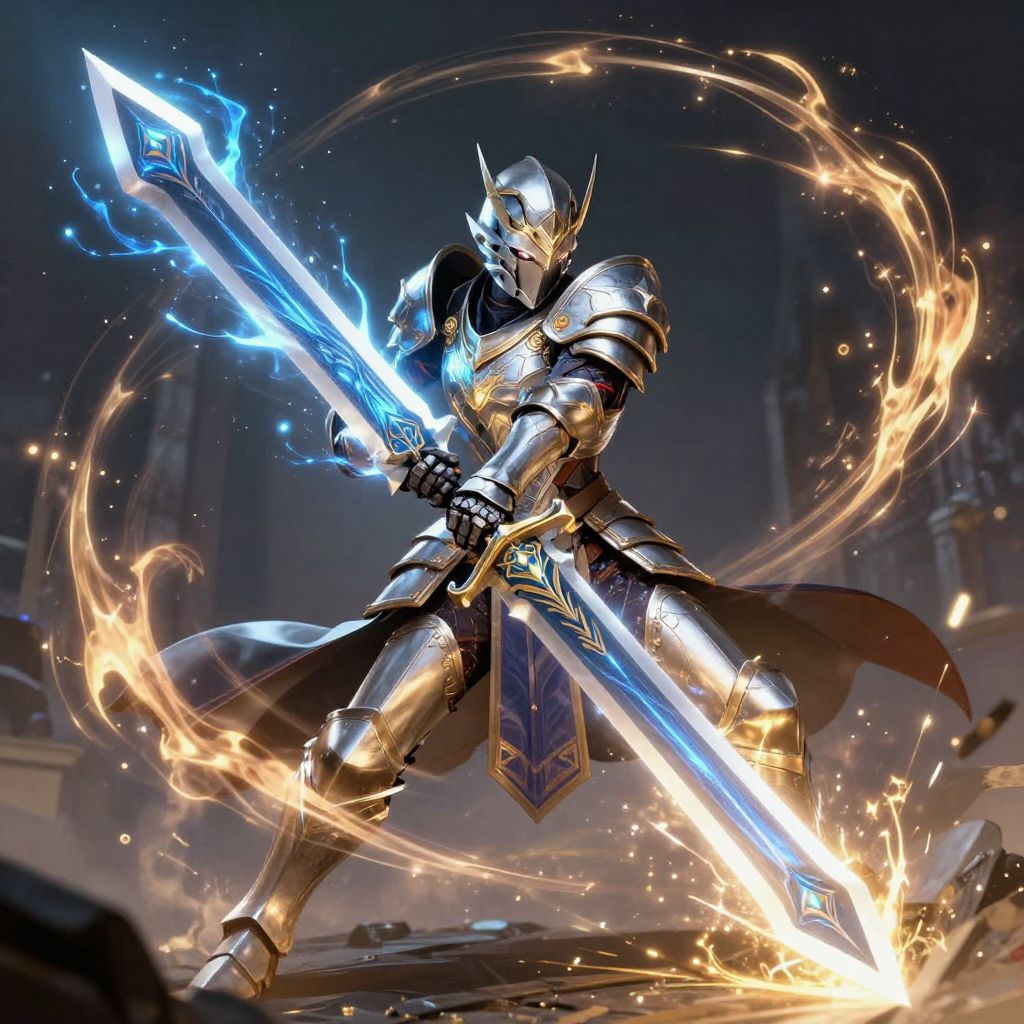 Epic Fantasy Battle with Giant Energy Sword
