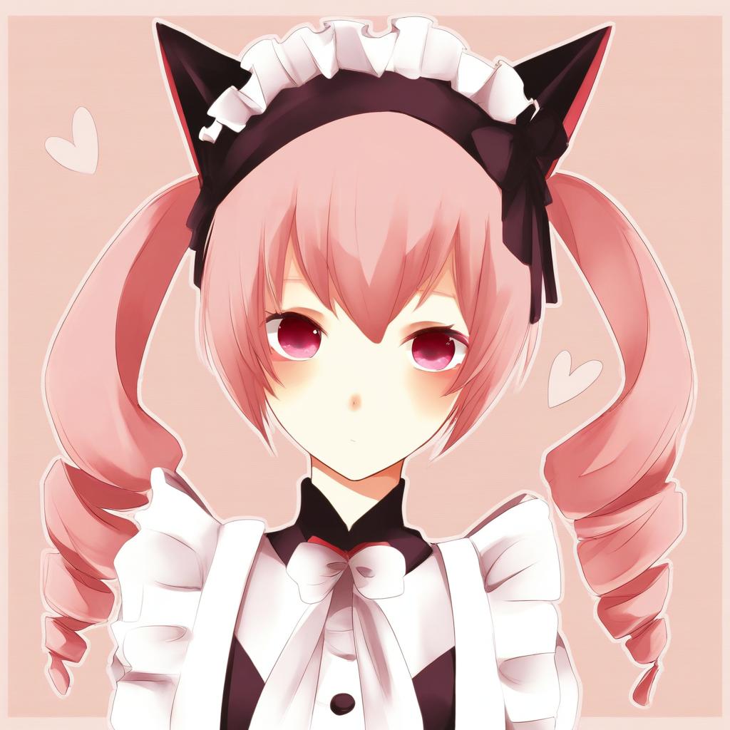 Akiha rumiho, steins;gate, 1girl, maid, maid headdress, maid, cat ears, pink eyes, pink hair, long hair, twintails, twin drills, by artist toukaairab, leet