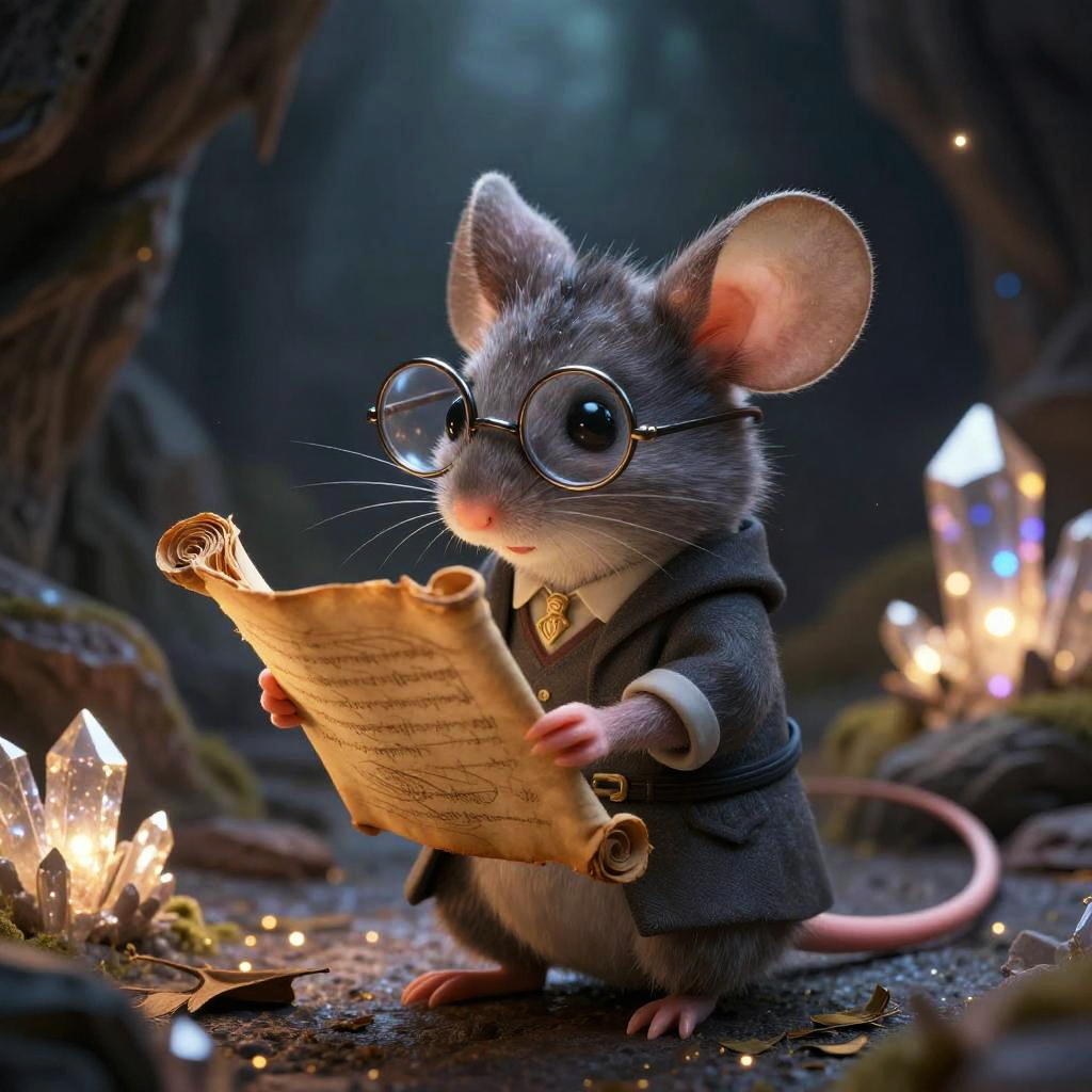 Adorable Scholarly Mouse in Mystical Cave