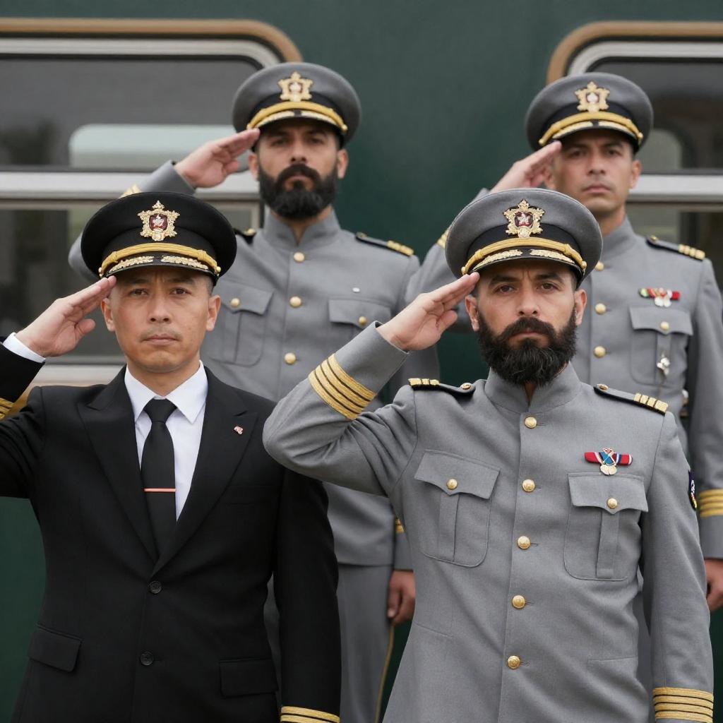 Black and White Military Officers Saluting