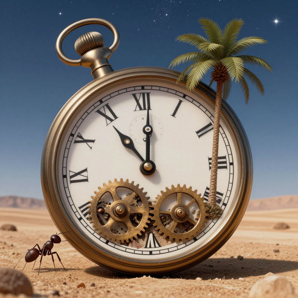 A dreamlike cityscape is captured from an unconventional angle, as if seen through the eyes of a curious ant, blending modern architecture with fantastical elements in a surreal style. The scene features towering structures that defy explanation, evoking both awe and confusion among its inhabitants. Instead of melting clocks, oversized mechanisms with distorted gears can be observed, contributing to the enchanting atmosphere of wonder and intrigue.
