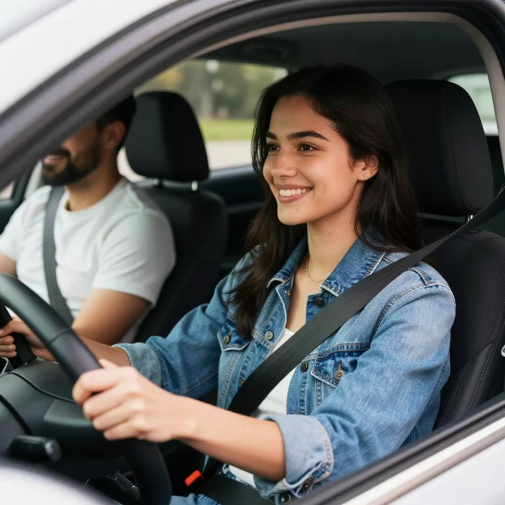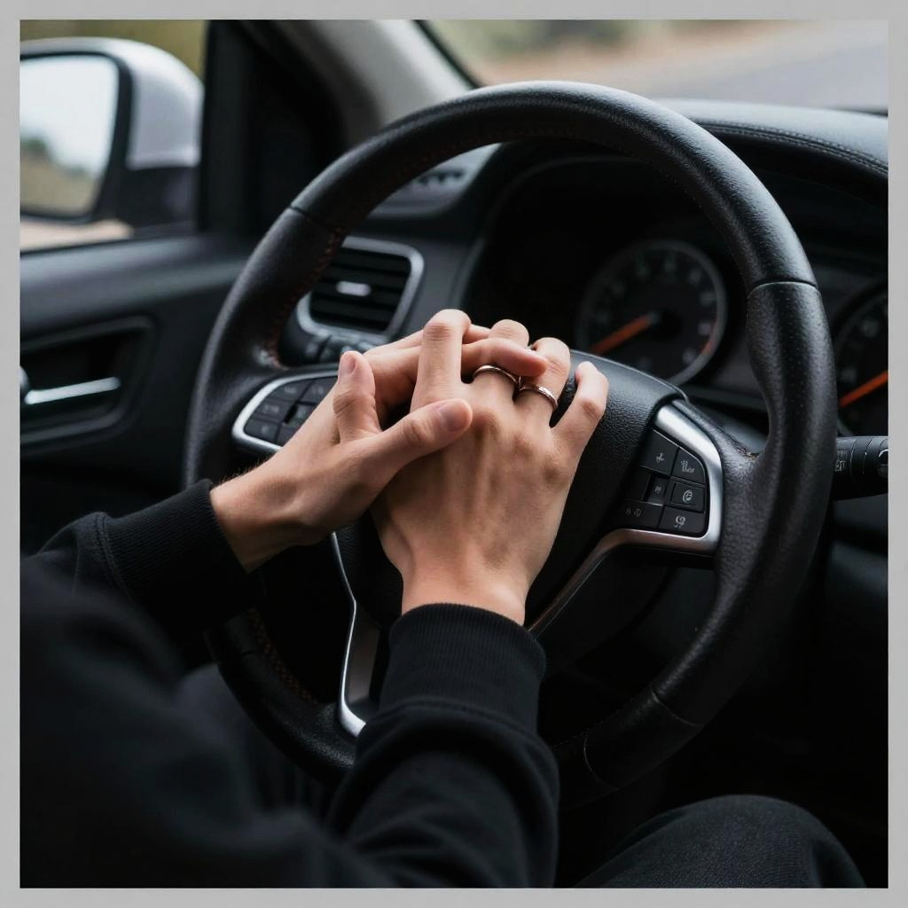 Photograph collage showing close-ups of sleek, black seat belts adorned with sparkling, star-like reflective dots. The belts are fastened into car seats, with a person's torso visible in the top right panel, wearing a gray shirt and black tie. The image uses a high-contrast, glossy style, highlighting the reflective material and metallic accents on the seat belts.