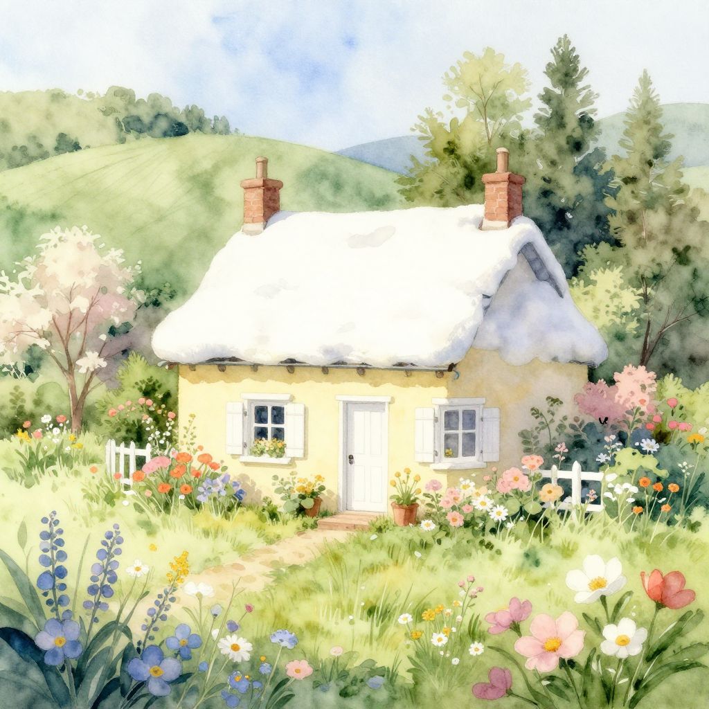 Ghibli-Style Mountain Cabin in Cherry Blossoms