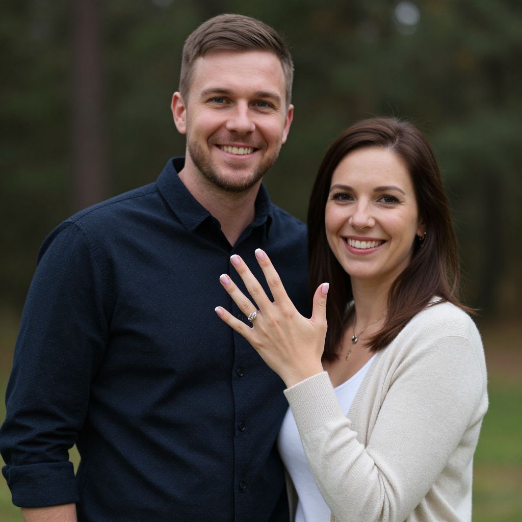Smiling Couple with Engagement Ring