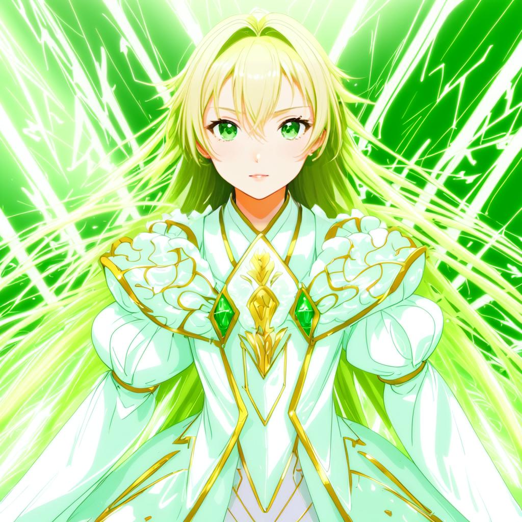 Asseylum vers allusia, aldnoah.zero, 1girl, green eyes, blonde hair, long hair, by artist ajishio, anime