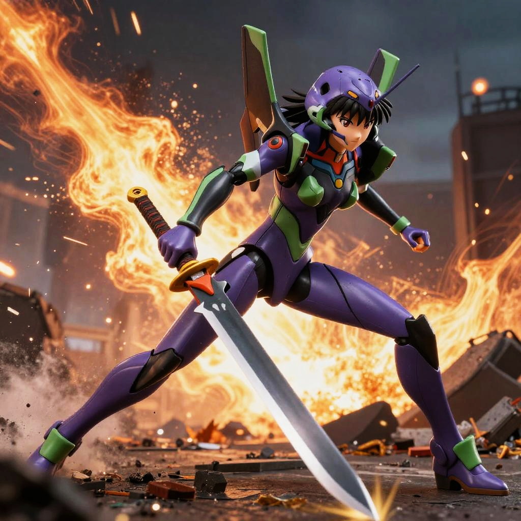 (blind box toy style:1.5)(dramatic, gritty, intense:1.4), masterpiece, best quality, 32k uhd, insane details, intricate details, hyperdetailed, hyper quality, high detail, ultra detailed, Masterpiece, super vista, Epic CG masterpiece, Misato Katsuragi, hdr, dtm, full ha, in the style of mecha anime, like a god The dancing long knife charging forward battlefield, the burst meteor, the fierce battle of fighting with his life, 8K, ultra detailed graphic tension, dynamic poses, stunning colors, 3D rendering, surrealism, cinematic lighting effects, realism, 00 renderer, super realistic, full - body photos, super wide Angle, HD, 1girl, (full body:1.7