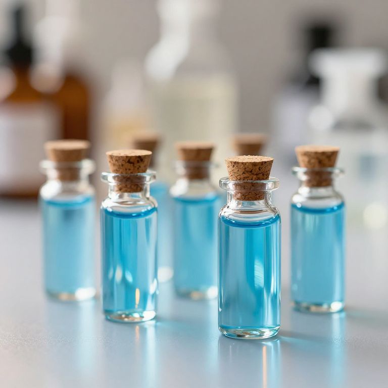 Iridescent Blue Vials on Reflective Surface