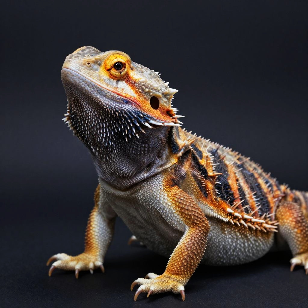 High-resolution, detailed image of a vibrant orange, black, and white Koi fish swimming in dark water. The fish features intricate scale patterns and flowing fins, illuminated with neon-like lighting that enhances its vivid colors and texture.