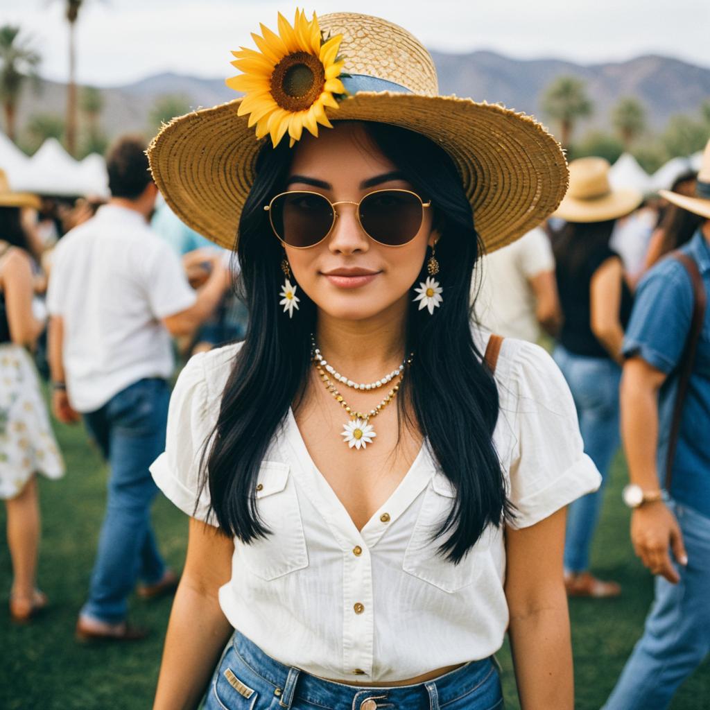 Young Woman at Outdoor Festival in Bohemian Outfit