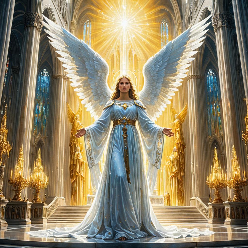 Angel Valkyrie, Heavenly Light, D&D character portrait, Celestial warrior portrait, fantasy art, oil painting, Majestic tranquility