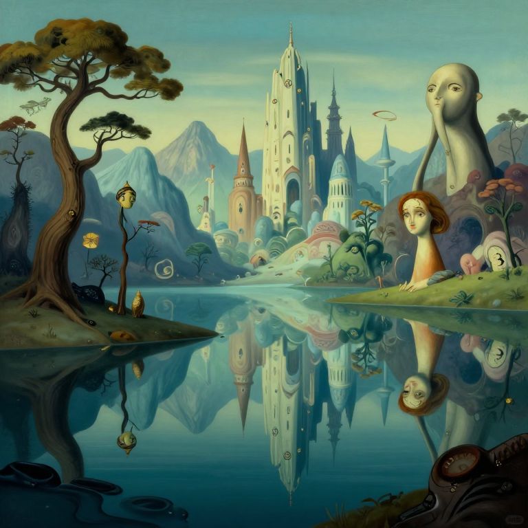 Craft an image reminiscent of the surreal landscapes by an influential Dutch master, showcasing an eye-level view of a fantastical forest where flora and fauna intermingle with advanced machinery and futuristic elements. The scene should combine warm, vibrant hues akin to those found in works from the Dutch Golden Age with cool, metallic tones evocative of cyberpunk aesthetics, establishing an emotional spectrum that stirs both fascination and intrigue for the coexistence of these disparate worlds.