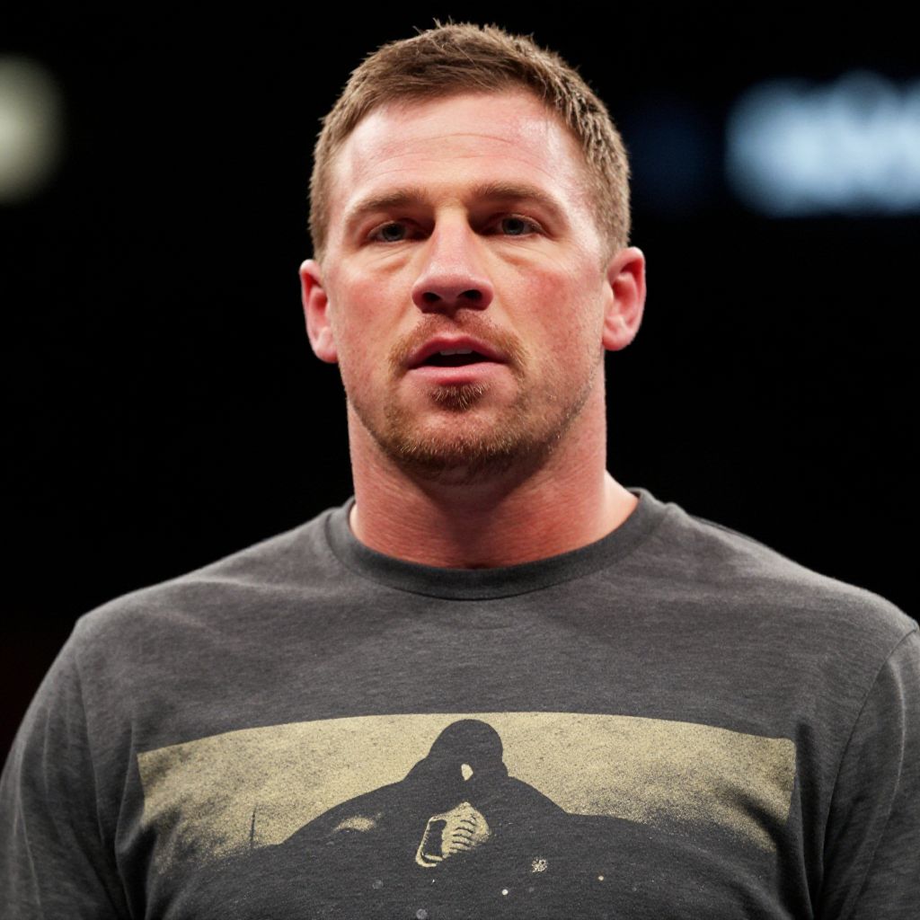 "Tito Ortiz, a close up of a man in a boxing ring with a shirt on"