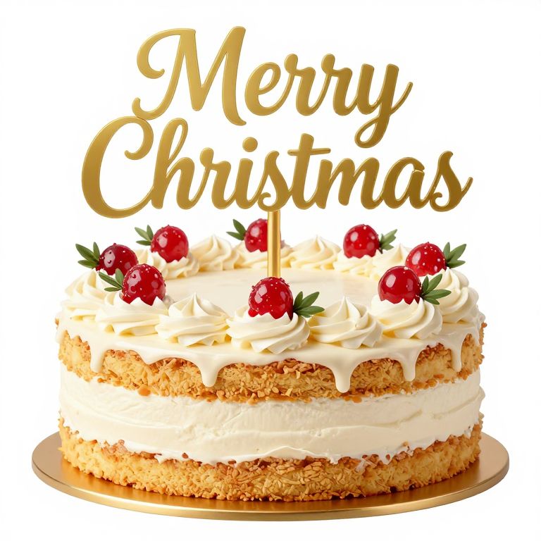 Christmas Cake with Topper Merry Christmas PNG & PSD Images